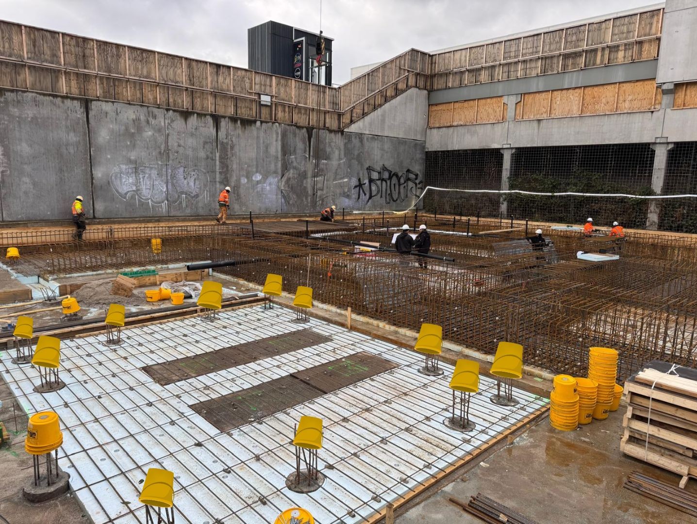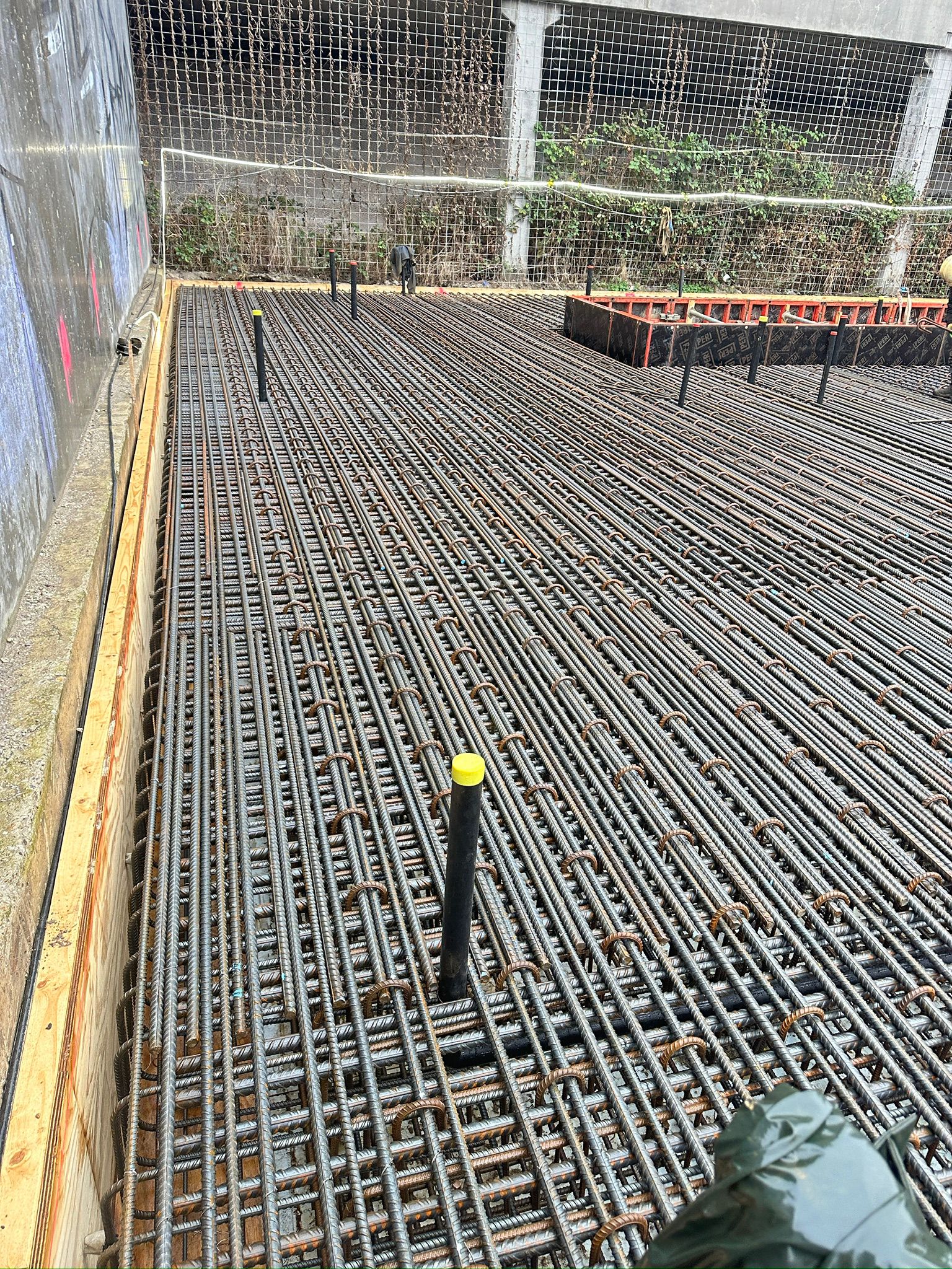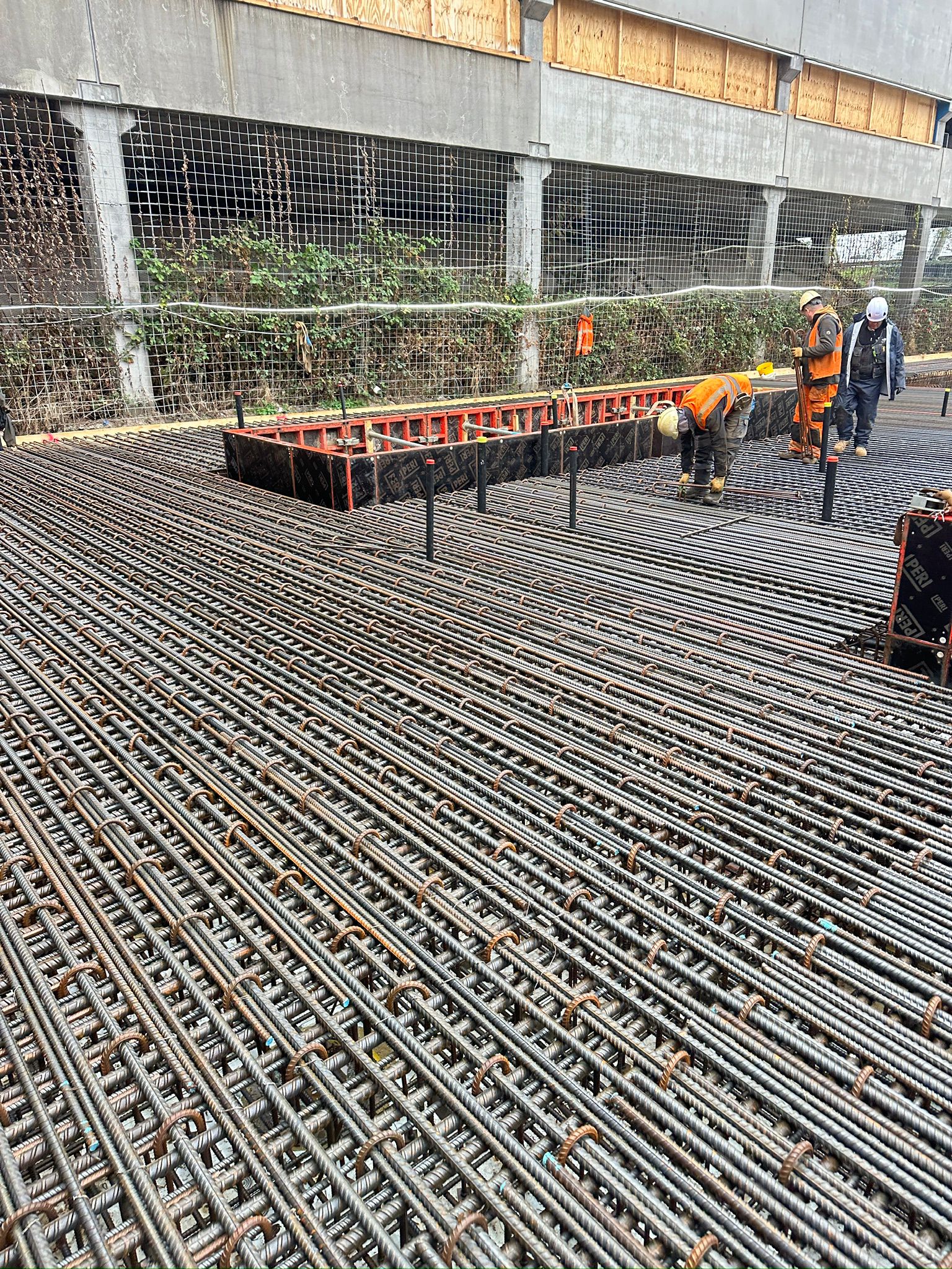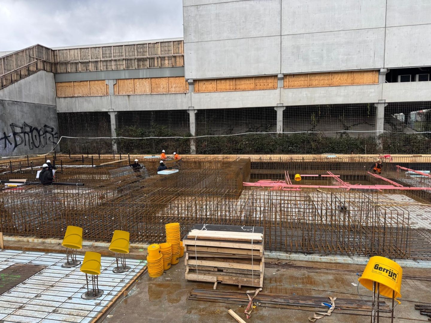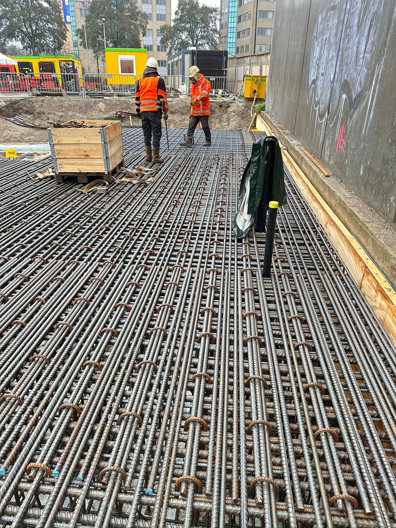 Momenteel (week 48) zijn we bezig met een zware fundatie plaat. In week 44 zijn we hiermee gestart. De fundatie bestaat uit ca. 180 ton wapening, die voor de kerst in drie fases volledig gestort zal worden.