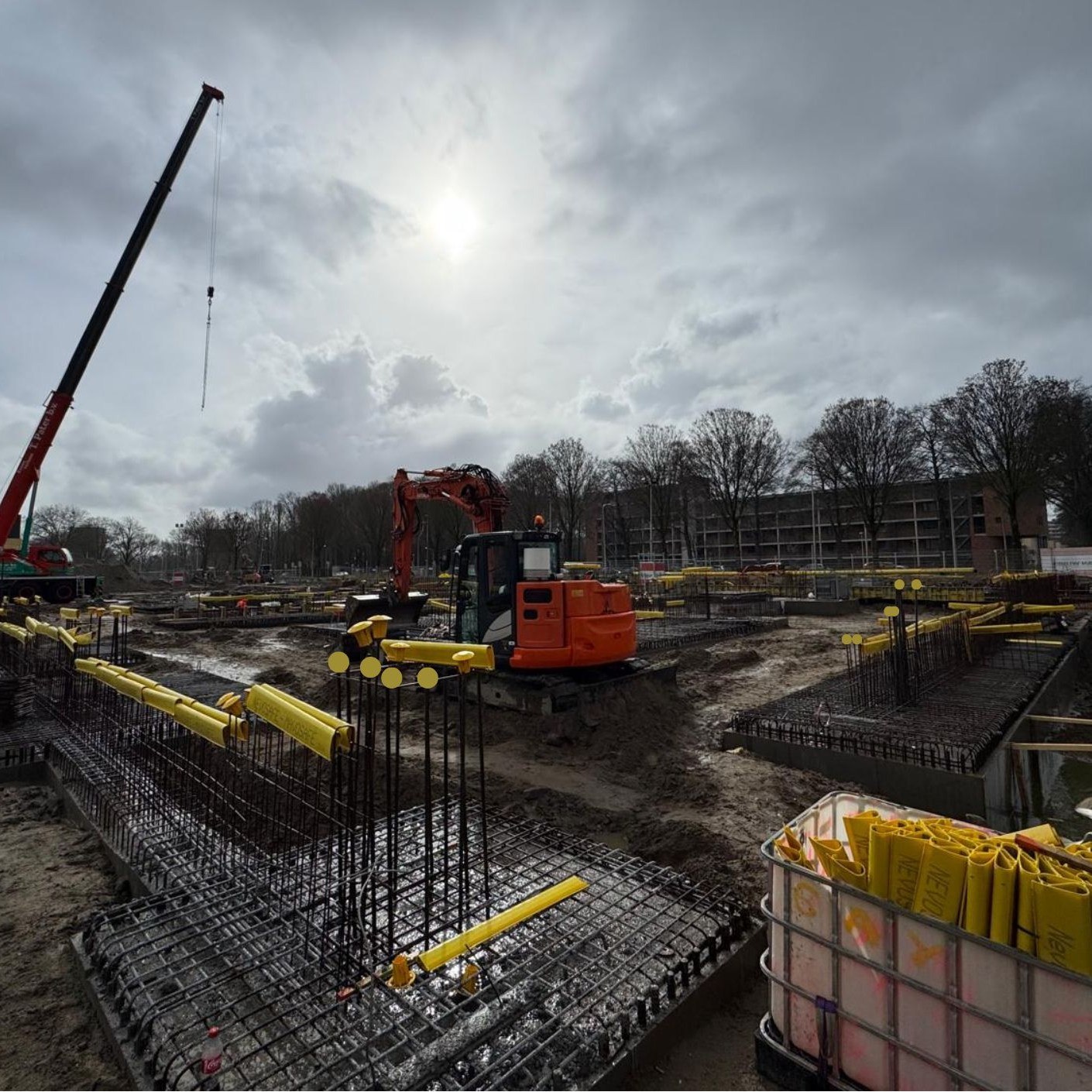 Onze onderaannemer Pala Betonstaal B.V. verwerkt hier maar liefst circa. 2.500 ton wapening. Een indrukwekkende hoeveelheid die de kracht van dit project onderstreept.